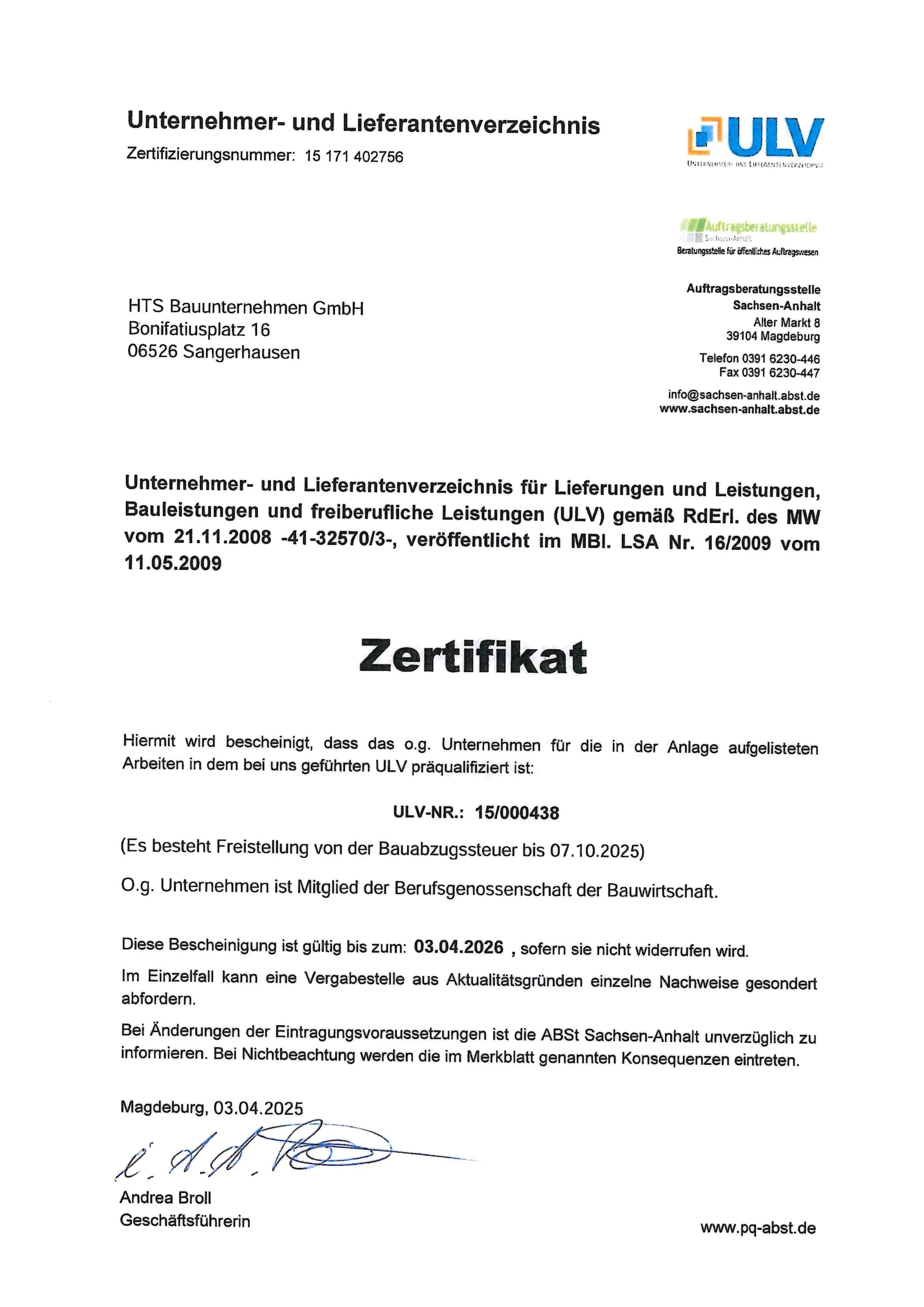 Die heutige HTS Bauunternehmen GmbH wurde im Jahre 2003 gegründet, wobei die Anfänge in den 70 er Jahren gemacht wurden. 1972 gründeten mehrere Handwerker die PGH Hoch- und Straßenbau. Später änderte sich nicht nur die Eigentumsform, sondern auch der Name. Viele kennen noch den VEB Kreisbaubetrieb, der zur Wende in die Hoch- und Tiefbau Sangerhausen GmbH umbenannt wurde.