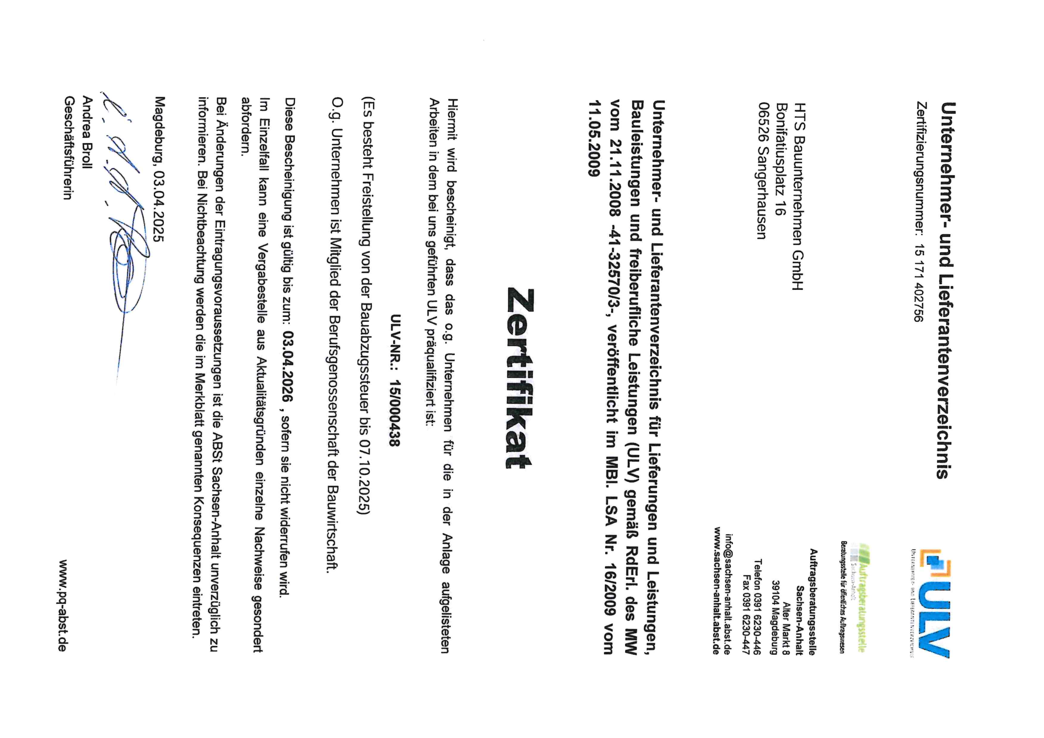 Seither sind wir hauptsächlich im südlichen Sachsen-Anhalts und in Nordthüringen erfolgreich tätig.